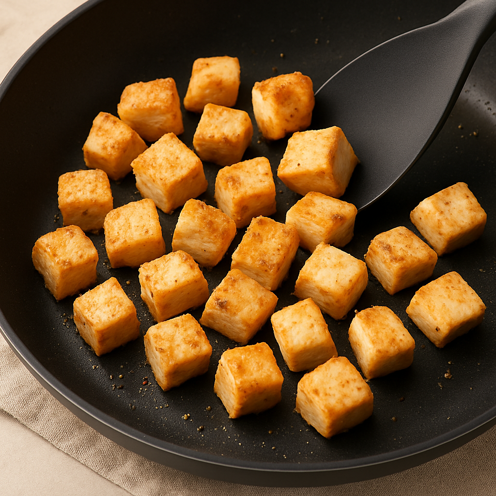 게다가 한 입 크기의 큐브 형태라 샐러드나 도시락으로 활용하기도 좋고, 에어프라이어에 살짝 돌리면 겉은 바삭하고 속은 촉촉해져요.