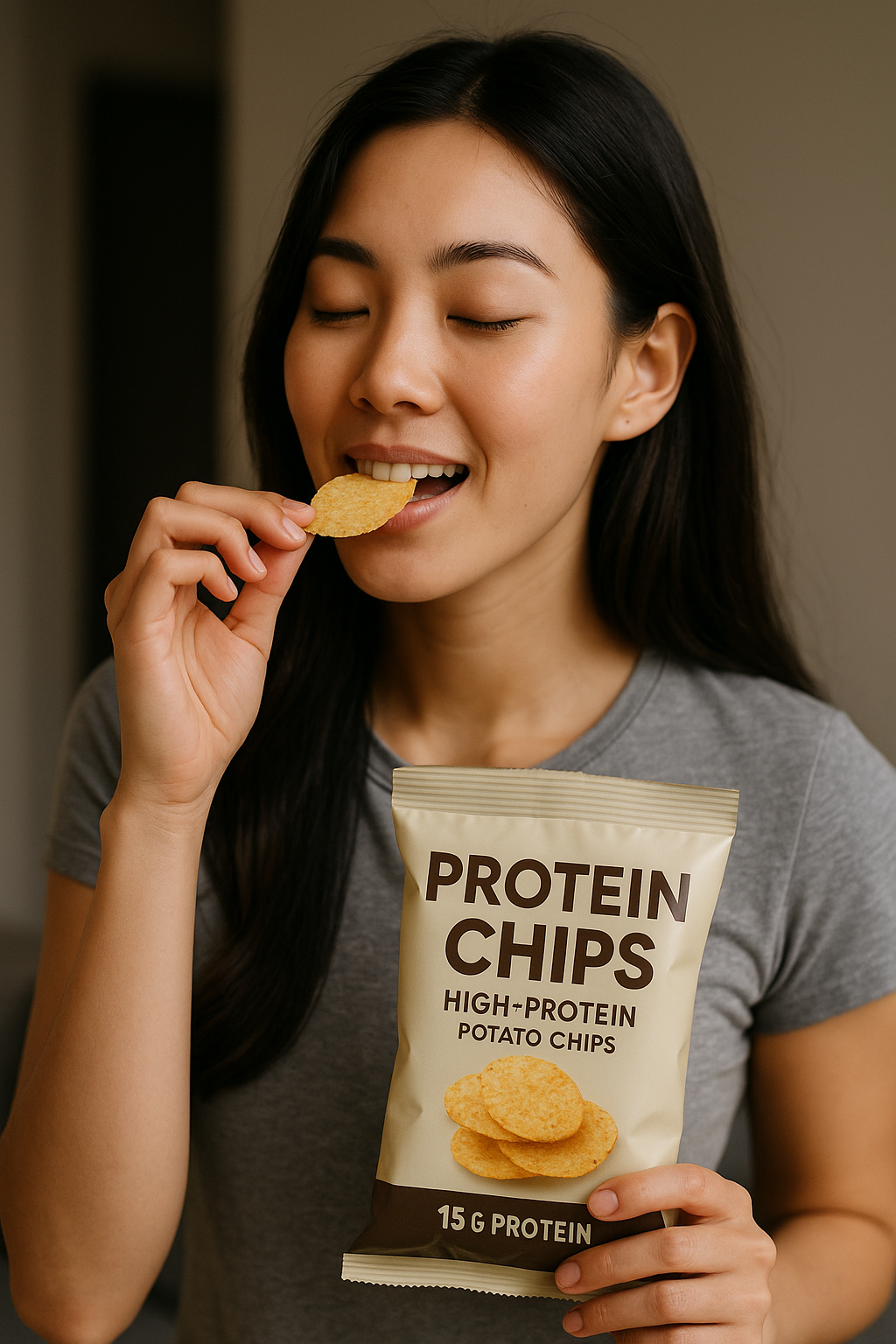 그러다 찾은 게 바로 고단백 감자칩입니다. 바삭한 식감은 그대로 유지하면서도, 단백질 함량이 높은 새로운 대체 간식! 이 제품은 운동 후에도, 다이어트 중에도 죄책감 없이 즐길 수 있어요.